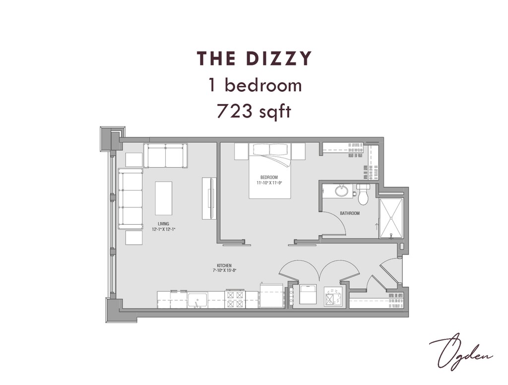 The Dizzy - Imagen 1 Unidad de apartamento: 102Modelo de apartamento: The Dizzy$1,3251 Dormitorio, 1 Baño, 723 sq ftDisponible Ahora2 Dormitorios