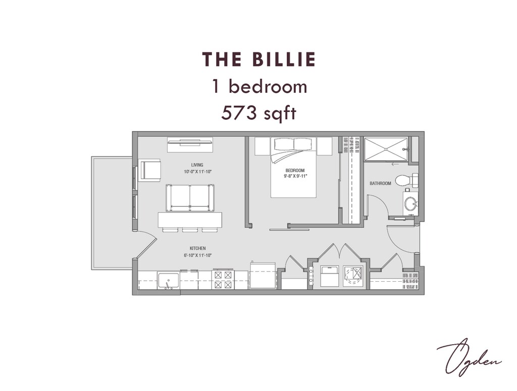 Modelo de apartamento: The BillieDesde $9991 Dormitorio, 1 Baño, 573 sq ftDisponible Ahora![]()