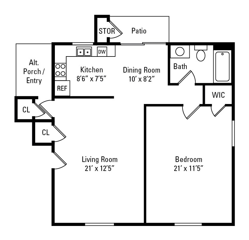 1 Bedroom, 1 Bath 750 sq. ft.