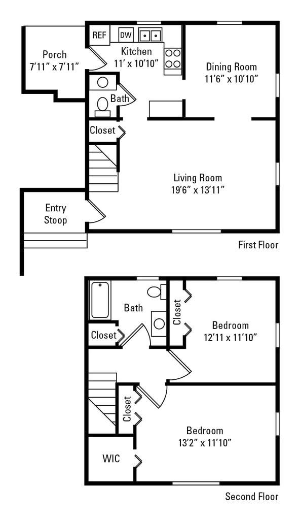 2 Bedroom, 1.5 Bath Townhome 1,250 sq. ft.