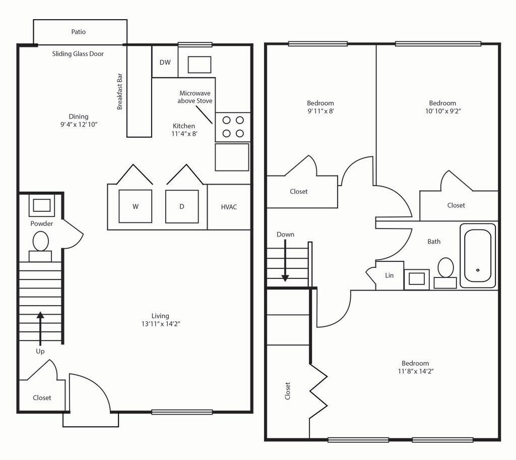 Modelo de apartamento: 2 Bedroom 1.5 BathDesde $2,0352 Dormitorios, 1.5 Baños, 984 sq ftDisponible January 25, 2026PlanosFotos![]()