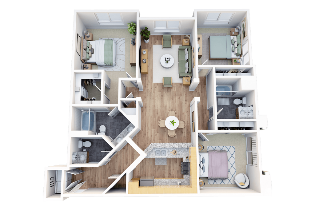 Modelo de apartamento: Three Bedroom C2Desde $3,6323 Dormitorios, 2.5 Baños, 1530-1584 sq ftDisponible Ahora![]()