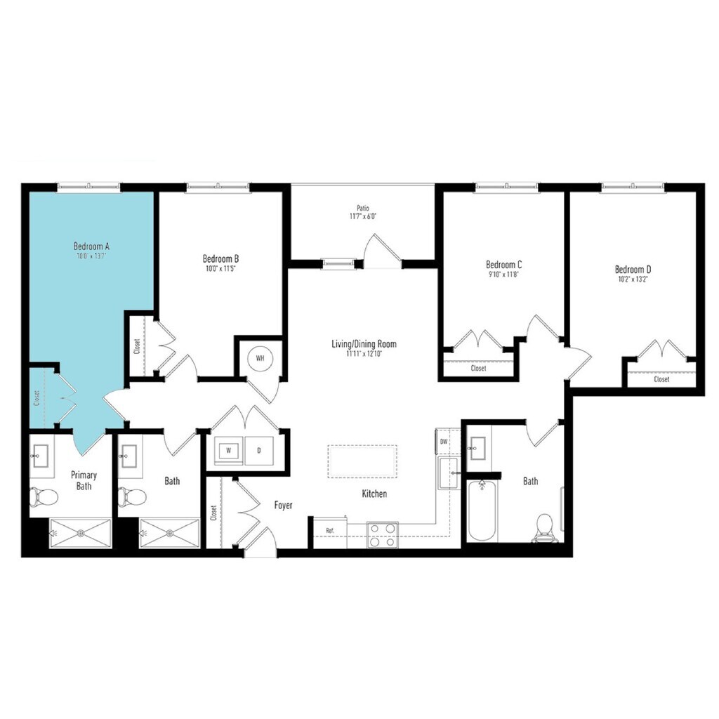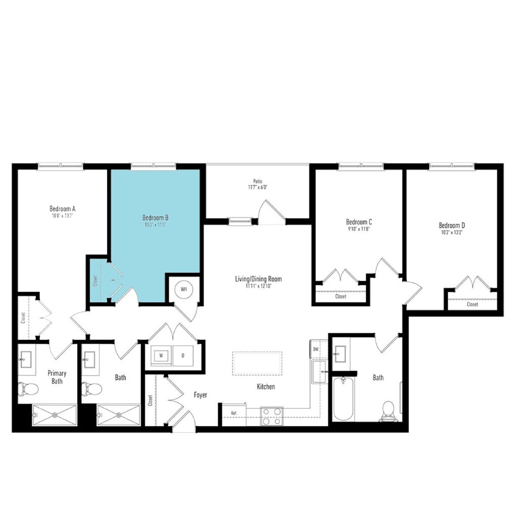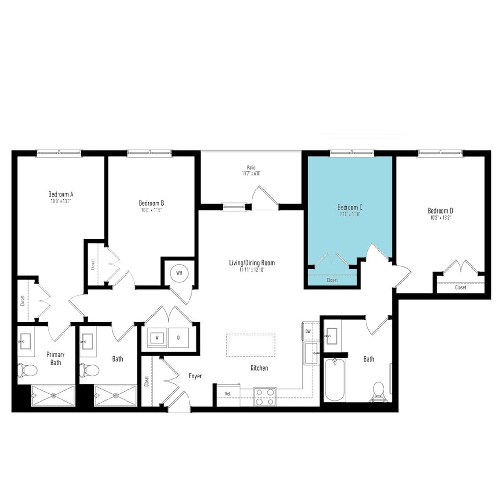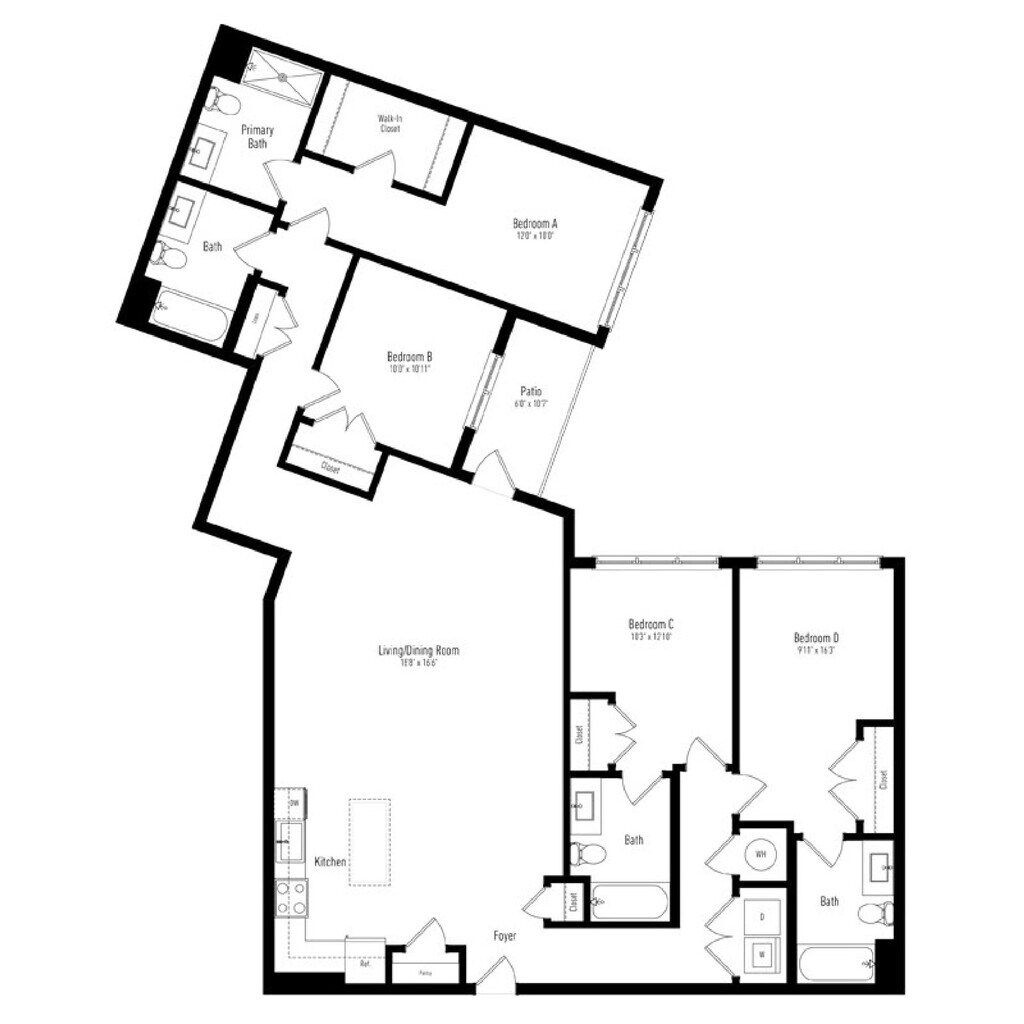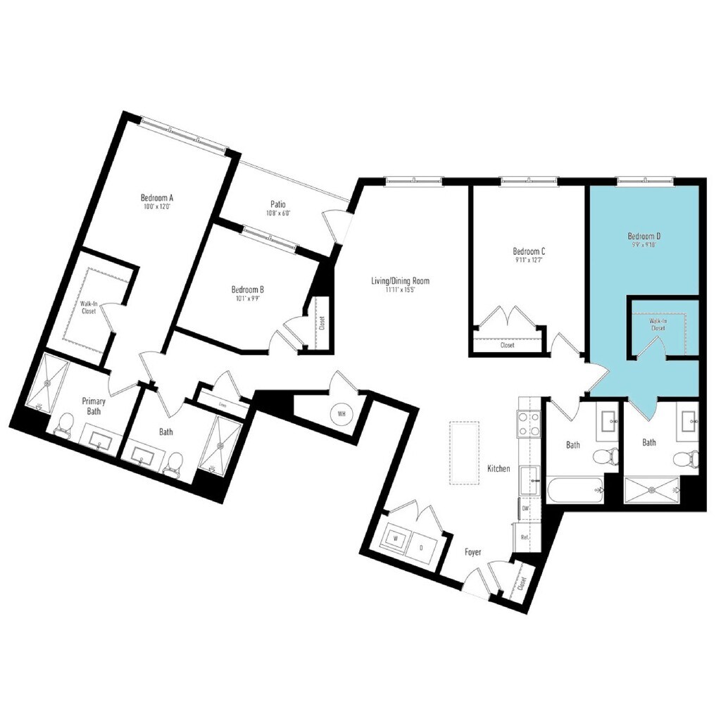 Modelo de apartamento: S4Desde $2,245Estudio, 1 Baño, 605 sq ftDisponible April 14, 2026PlanosFotos![]()