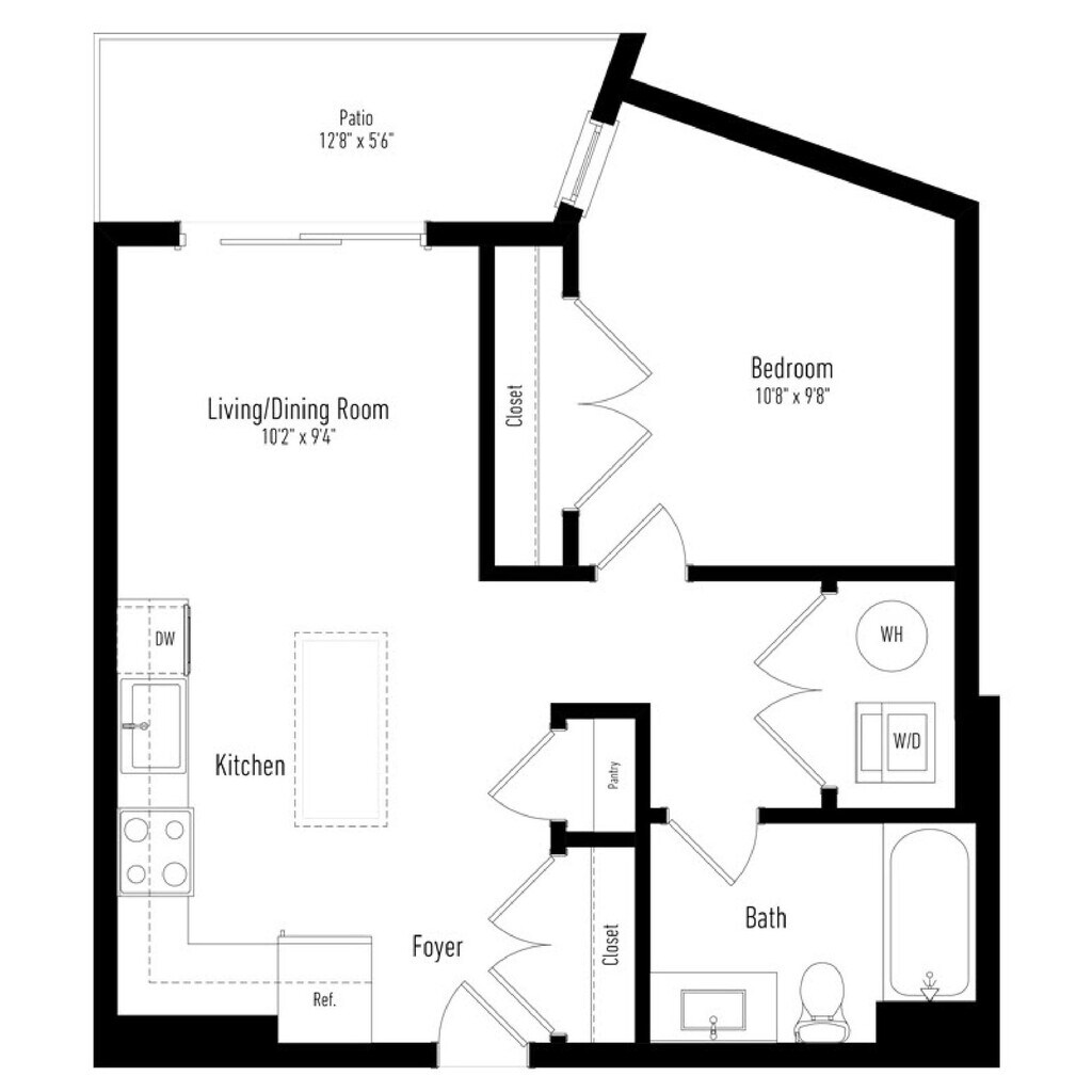 Modelo de apartamento: A1Desde $2,4001 Dormitorio, 1 Baño, 631 sq ftDisponible AhoraPlanosFotos![]()