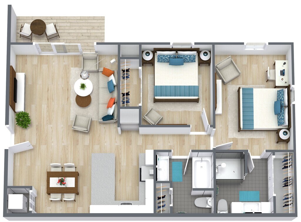 Modelo de apartamento: Two Bedroom Two BathroomDesde $1,1852 Dormitorios, 2 Baños, 960 sq ftNo DisponibleTwo Bedroom Two Bathroom - Plano 1