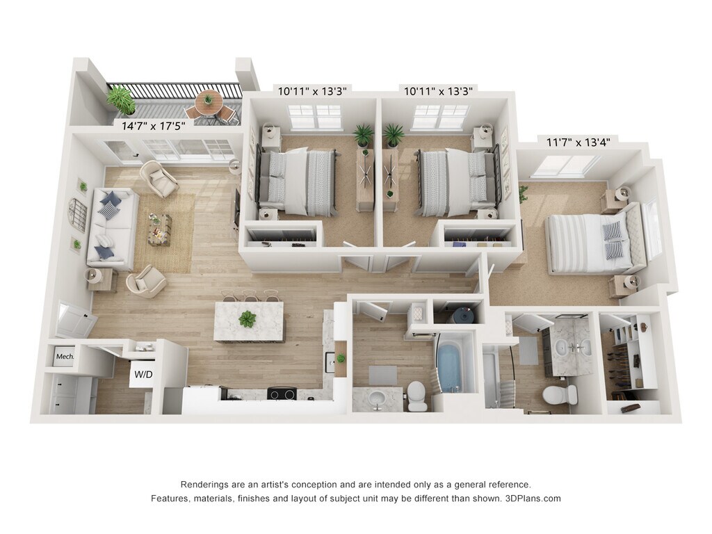 3 Dormitorios, 2.5 Baños, 1339 pies²Disponible Nov 1Galería del Modelo