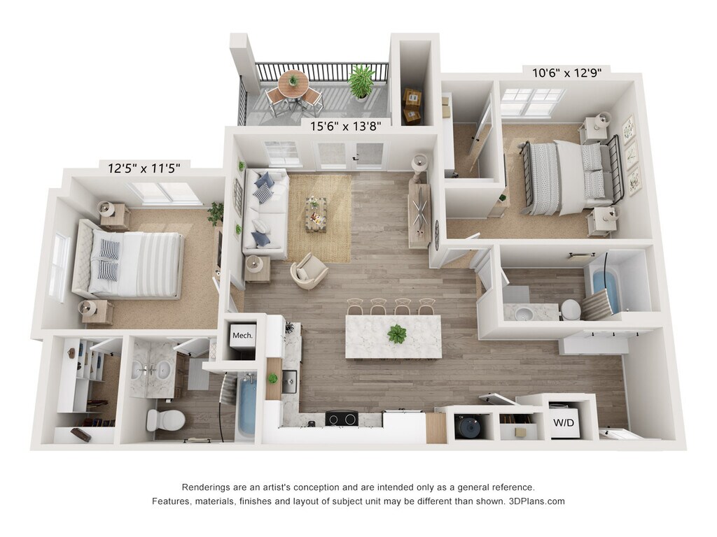 2 Dormitorios, 2 Baños, 1054-1082 pies²Disponible Oct 14Galería del Modelo