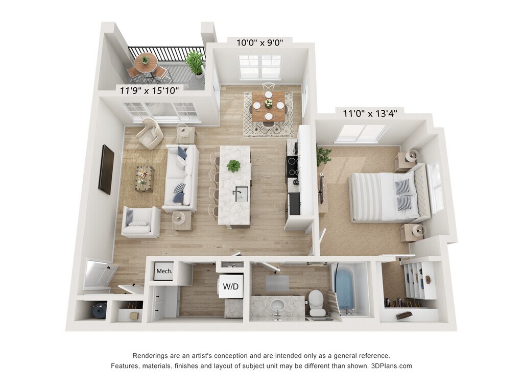 1 Dormitorio, 1 Baño, 802 pies²Disponible AhoraGalería del Modelo