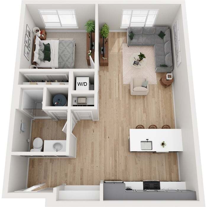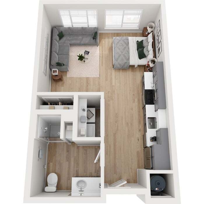 Modelo de apartamento: S2Desde $1,795Estudio, 1 Baño, 500 sq ftDisponible AhoraLos planos son representaciones artísticas. Todas las dimensiones son aproximadas. El producto y las especificaciones reales pueden variar en tamaño o detalle. No todas las características están disponibles en cada vivienda en alquiler. Por favor, consulta con un representante para obtener más detalles.