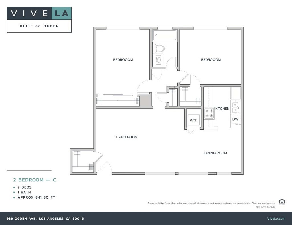 2 Dormitorios, 1 Baño, 841 pies²Disponible AhoraDetalles de Diponibilidad
