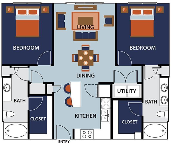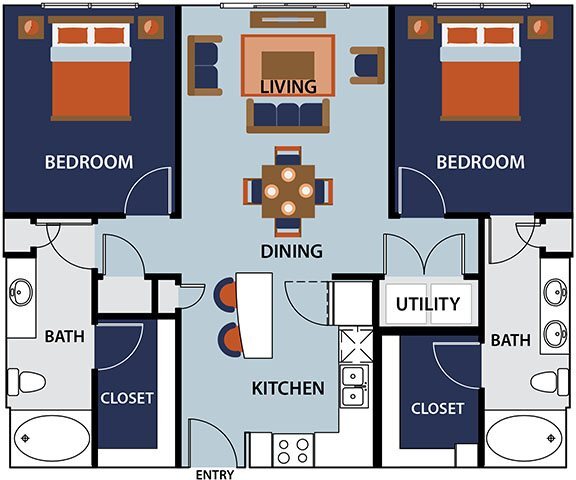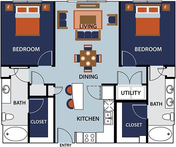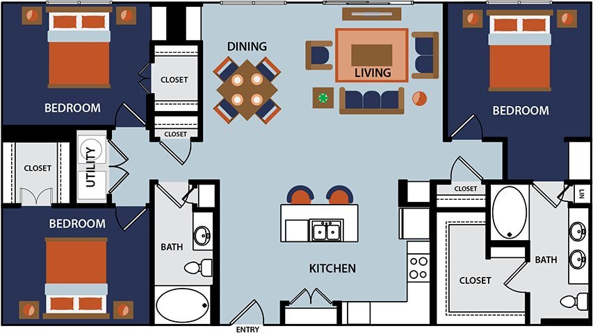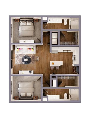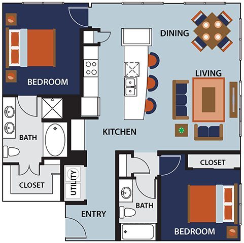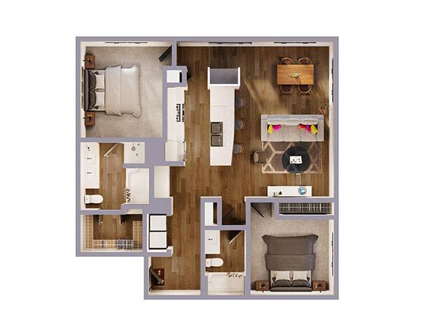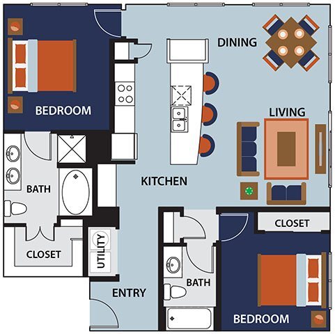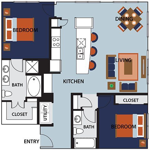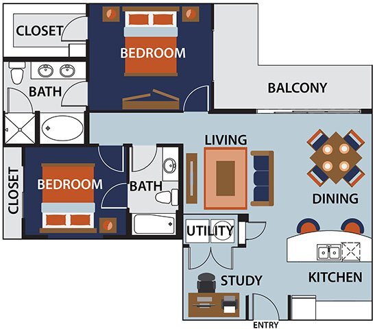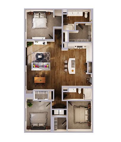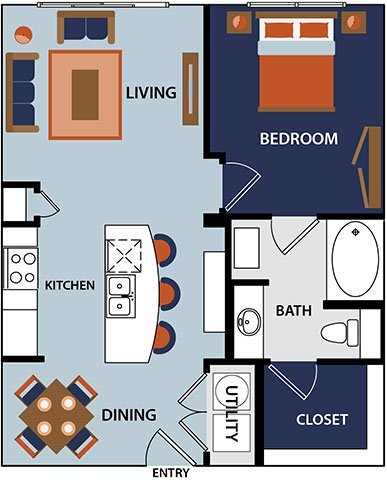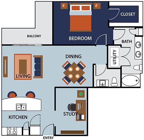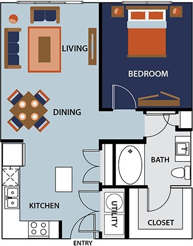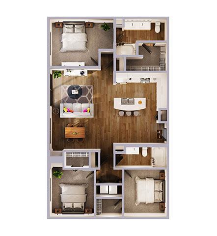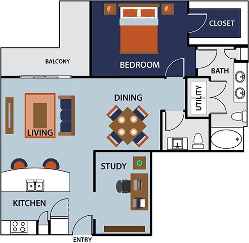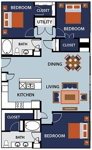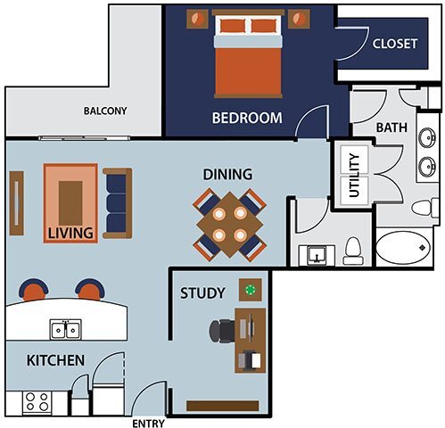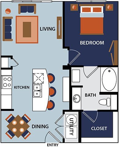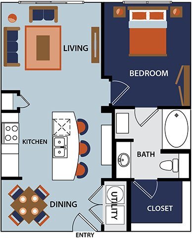 Modelo de apartamento: A3Desde $1,0511 Dormitorio, 1 Baño, 719 sq ftDisponible Ahora![]()