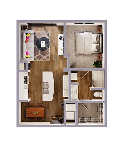 Modelo de apartamento: E1Desde $1,034Estudio, 1 Baño, 526 sq ftDisponible Ahora![]()