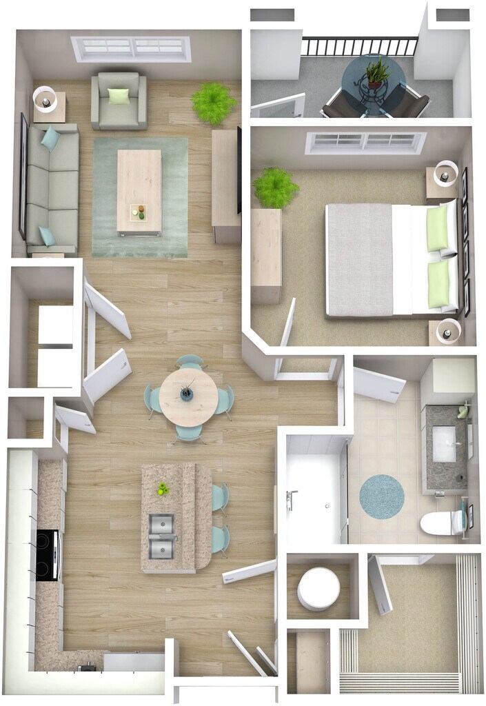 1 Dormitorio, 1 Baño, 713 pies²Disponible AhoraGalería del Modelo