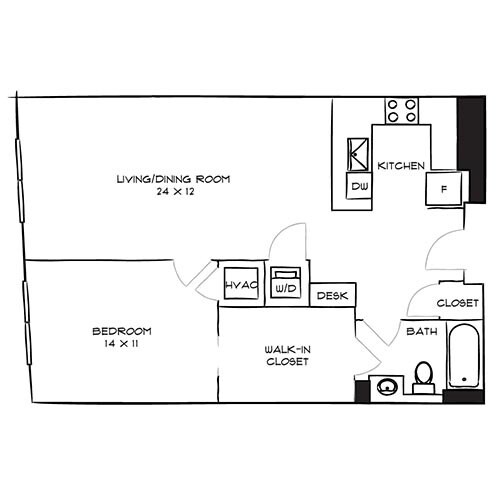 Modelo de apartamento: Style 1A1 Dormitorio, 1 Baño, 717 sq ftDisponible AhoraStyle 1A - Plano 1 Unidad de apartamento: 1-402Modelo de apartamento: Style 1A1 Dormitorio, 1 Baño, 717 sq ftDisponible AhoraStyle 1B