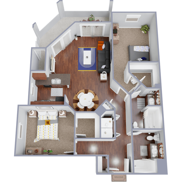 Modelo de apartamento: Kipling2 Dormitorios, 2 Baños, 995 sq ftNo Disponible![]()