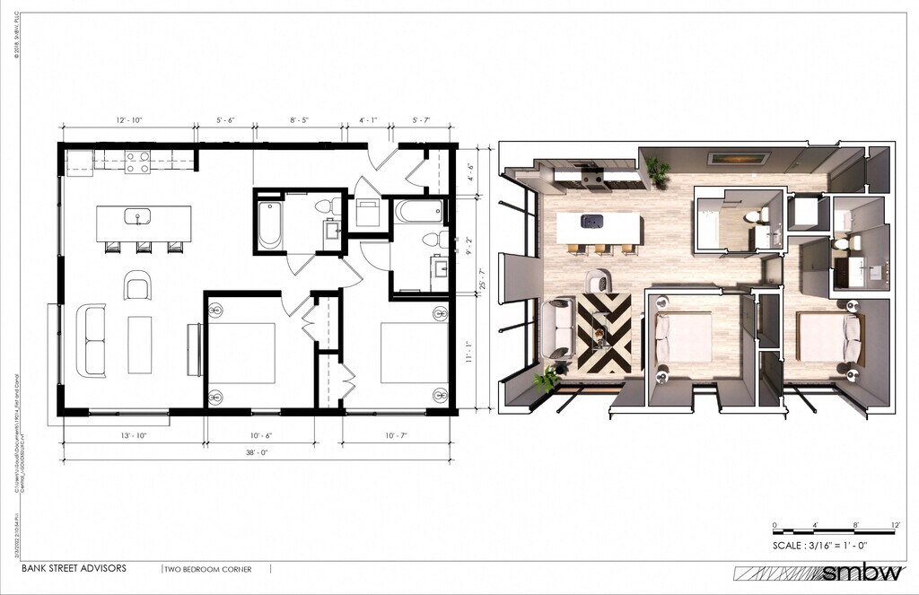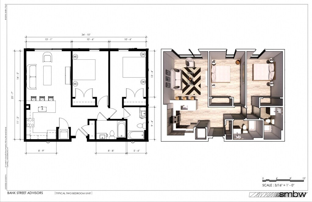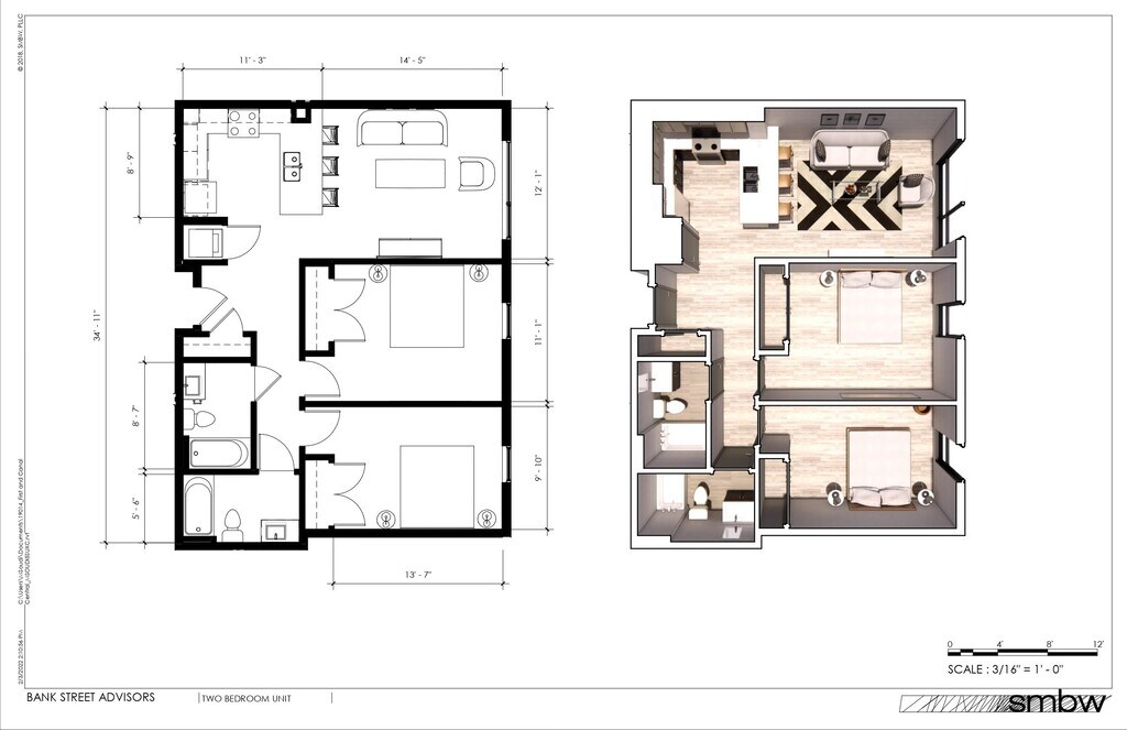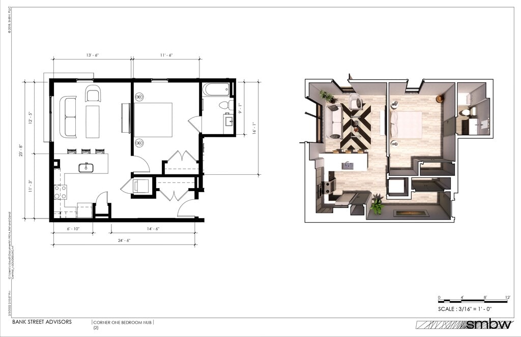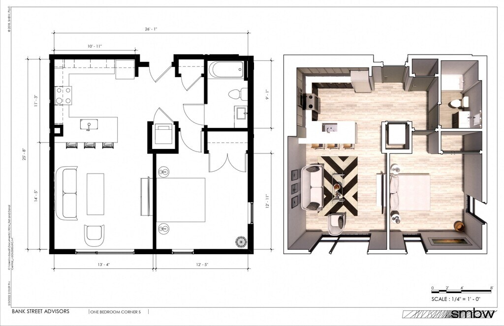 1 Dormitorio, 1 Baño, 605 pies²Galería del Modelo