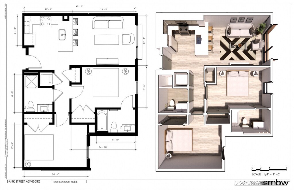 1 Dormitorio, 1 Baño, 706 pies²Disponible AhoraGalería del Modelo