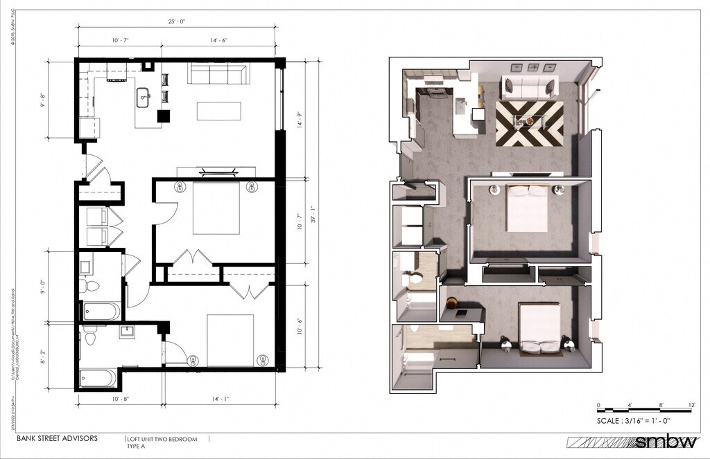 Modelo de apartamento: 1H - LoftLlame para Precios1 Dormitorio, 1 Baño, 605 sq ftNo Disponible![]()