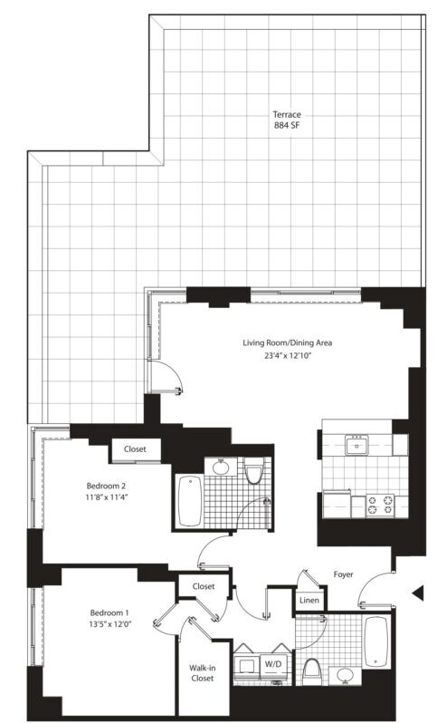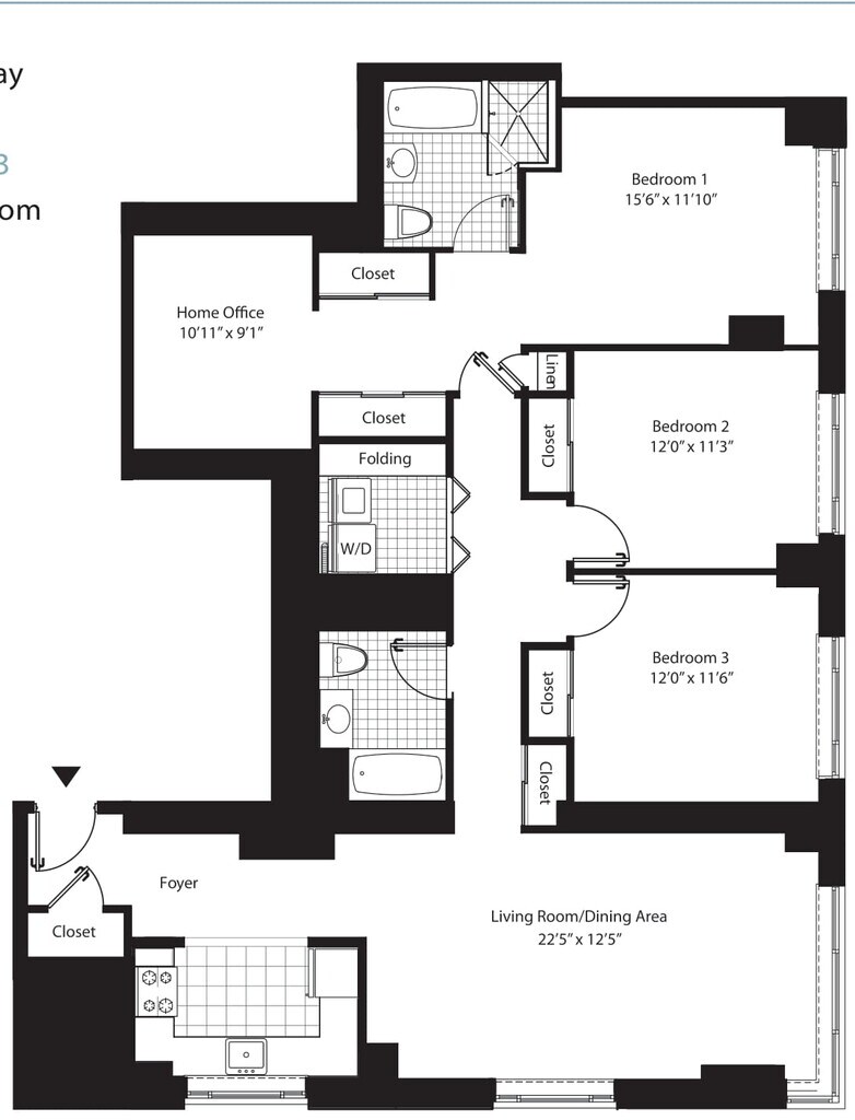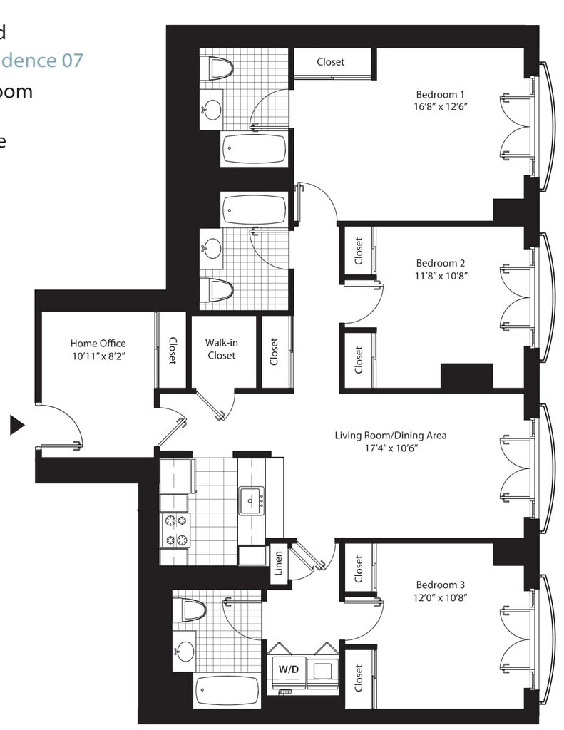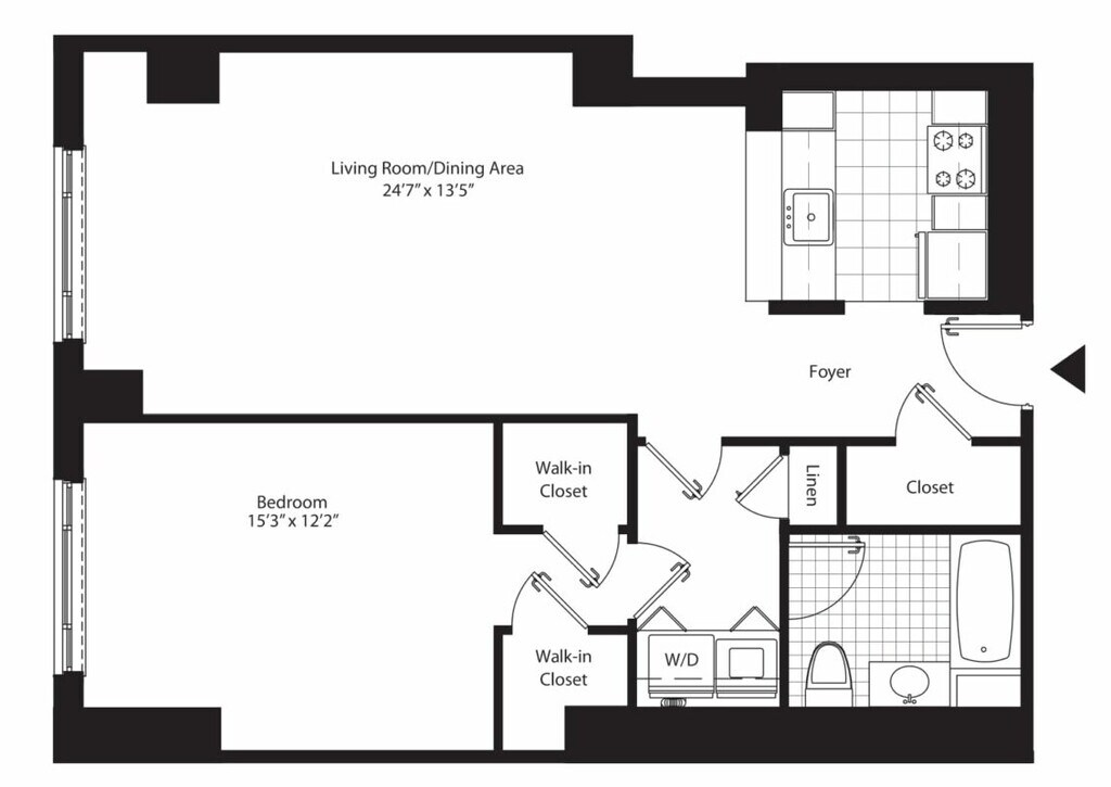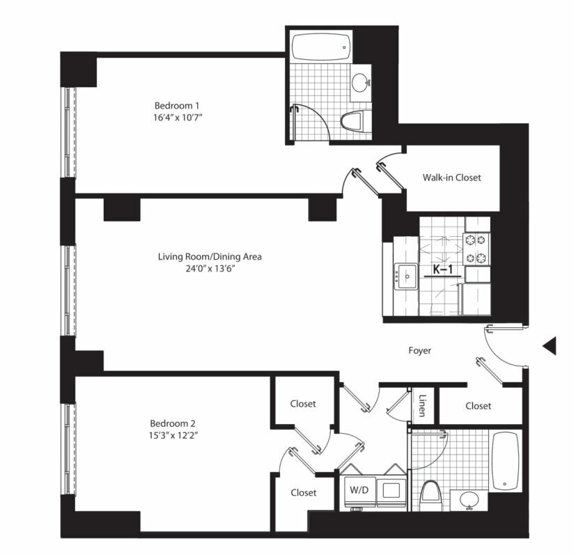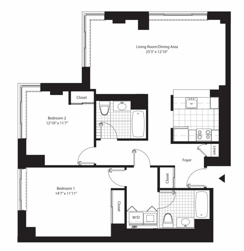 Modelo de apartamento: Melrose$3,1501 Dormitorio, 1 Baño, 712 sq ftNo Disponible![]()