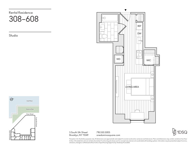 One Domino Square se encuentra en el Barrio Williamsburg y el código postal 11249 de Brooklyn, NY.