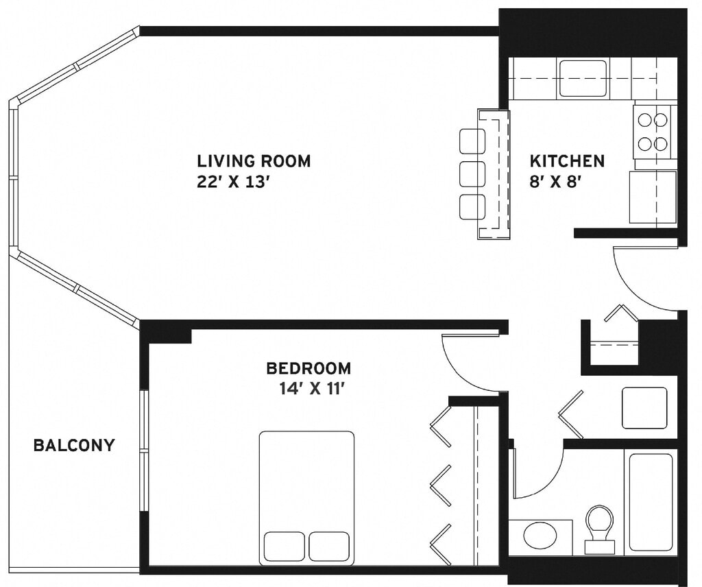 Modelo de apartamento: Convertible E/KLlame para Precios1 Dormitorio, 1 Baño, 700 sq ftDisponible December 3, 2025![]()