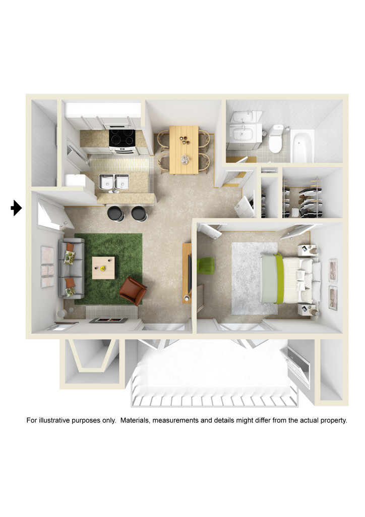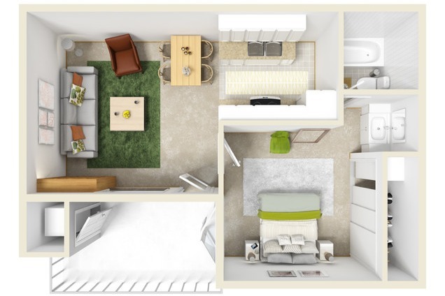 1 Dormitorio, 1 Baño, 500 pies²Disponible AhoraGalería del Modelo