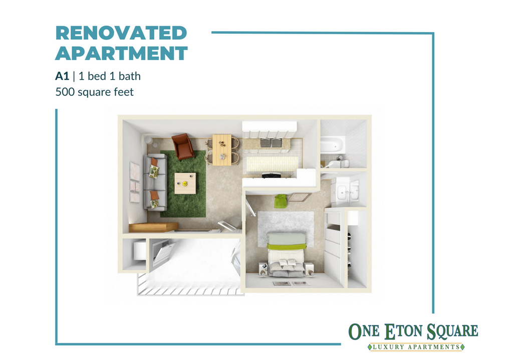 Modelo de apartamento: A1 Renovated1 Dormitorio, 1 Baño, 500 sq ftDisponible Ahora![]()