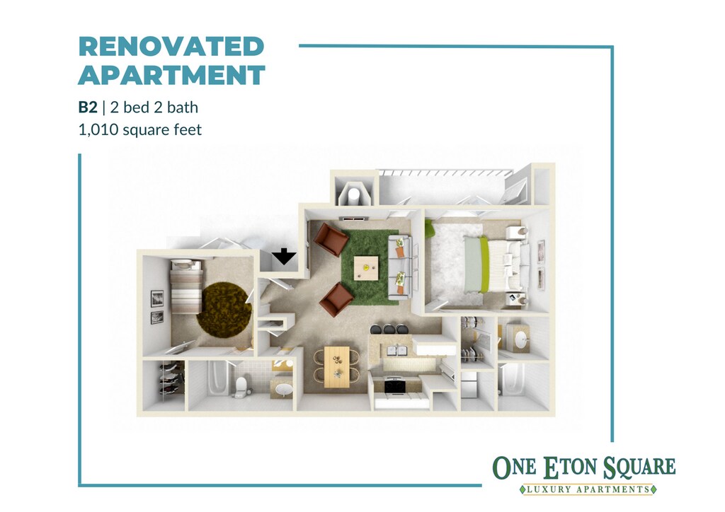 Modelo de apartamento: B2 Renovated2 Dormitorios, 2 Baños, 1010 sq ftDisponible Ahora![]()