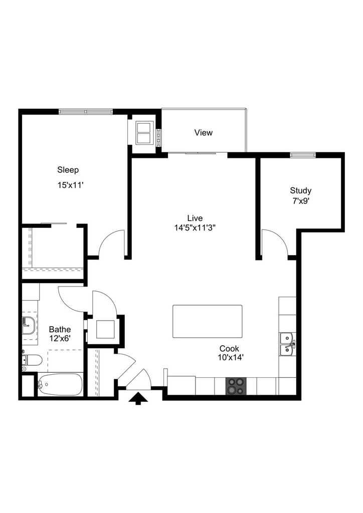 Estudio, 1 Baño, 612 pies²Galería del Modelo