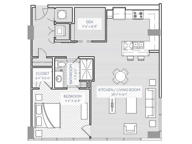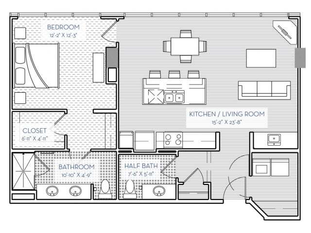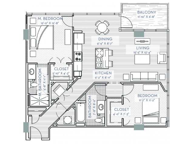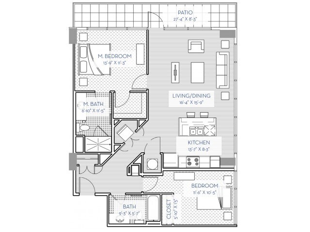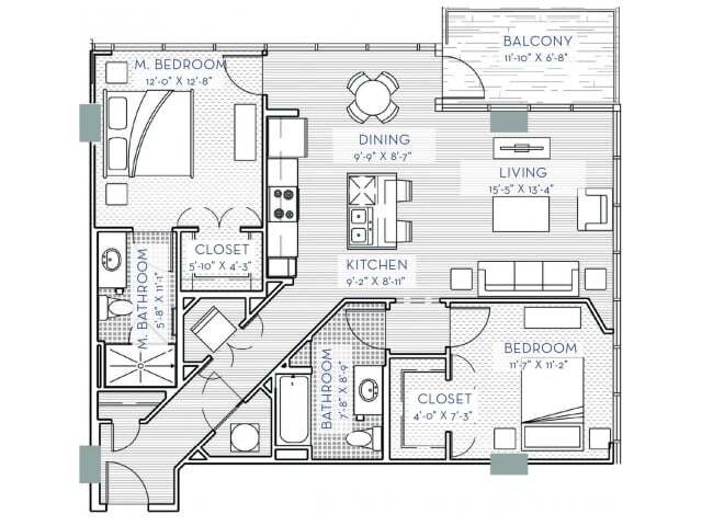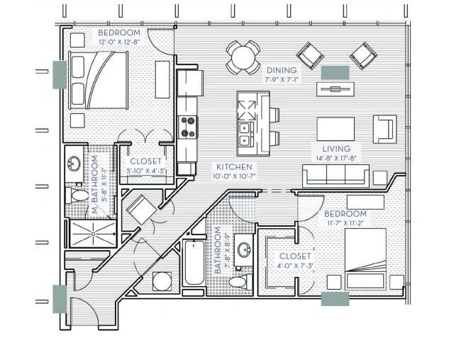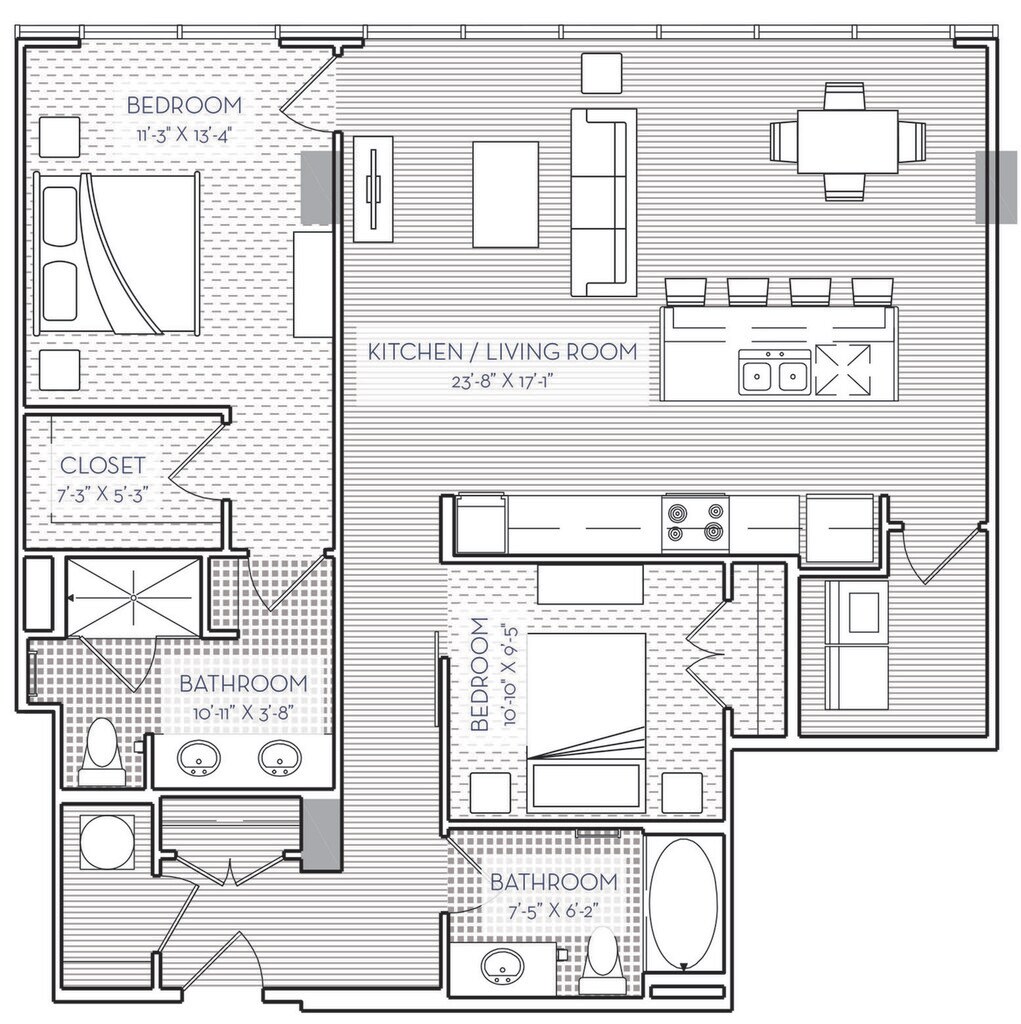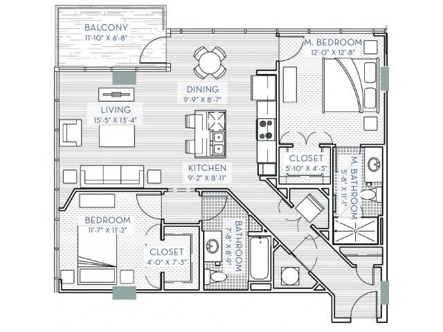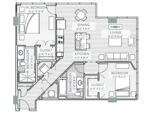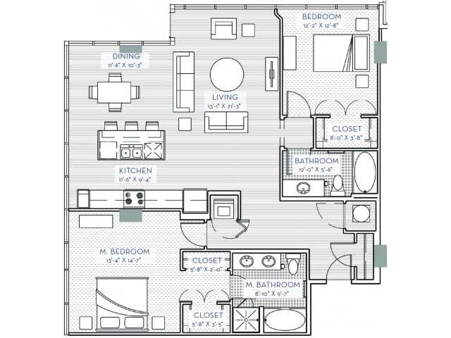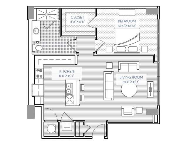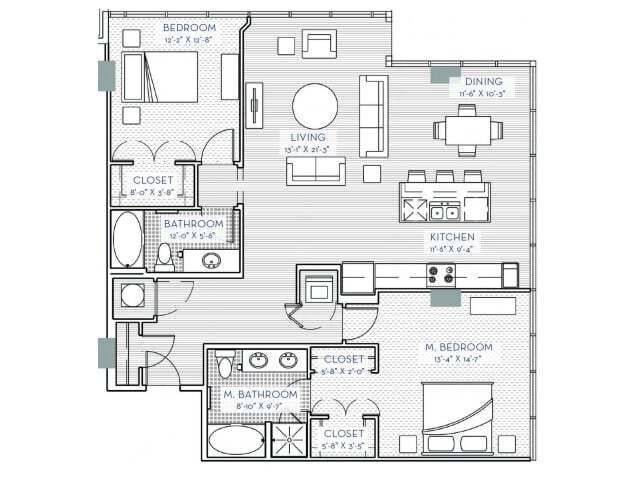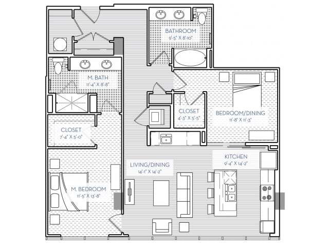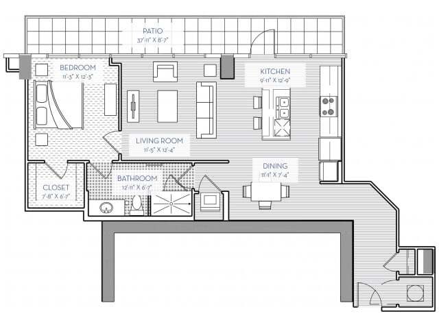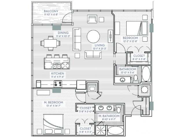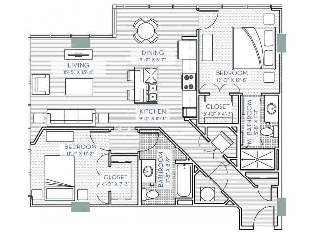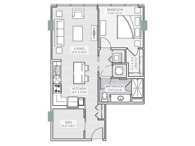 Modelo de apartamento: One BedroomDesde $1,9301 Dormitorio, 1 Baño, 632-955 sq ftDisponible AhoraPlanosFotos![]()