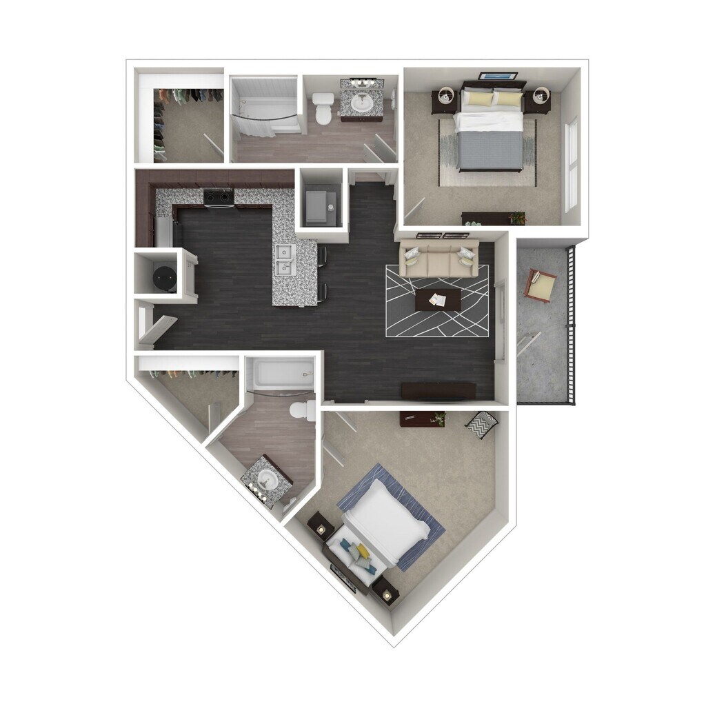 1 Dormitorio, 1 Baño, 852 pies²Disponible AhoraEl más grandeEsta opción tiene las unidades más grandes para este modeloGalería del Modelo