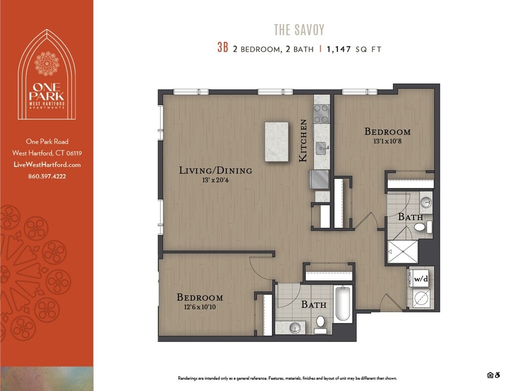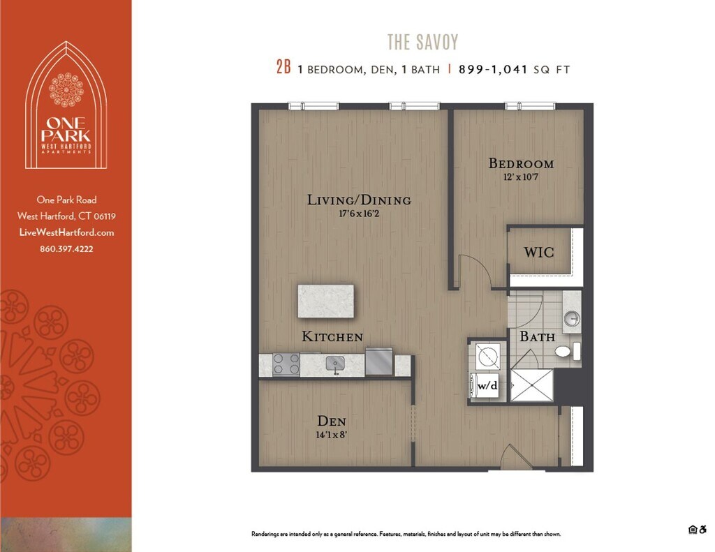 Unidad de apartamento: 108Modelo de apartamento: A3.1Desde $2,3301 Dormitorio, 1 Baño, 893 sq ftDisponible Ahora![]()