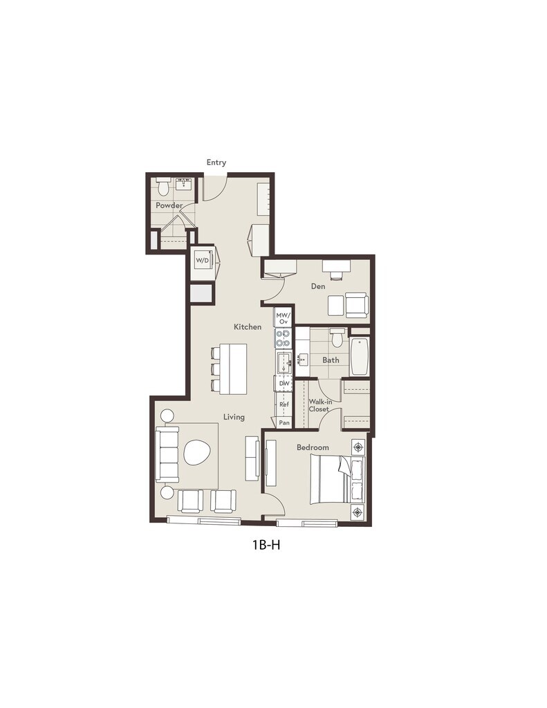 1B-EH - Plano 1 Unidad de apartamento: 1203Modelo de apartamento: 1B-EH$3,1151 Dormitorio, 1 Baño, 780 sq ftDisponible AhoraDen-1B-H