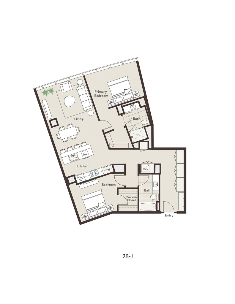 1B-G - Plano 1 Unidad de apartamento: 0202Modelo de apartamento: 1B-G$2,6001 Dormitorio, 1 Baño, 920 sq ftDisponible Ahora1B-B