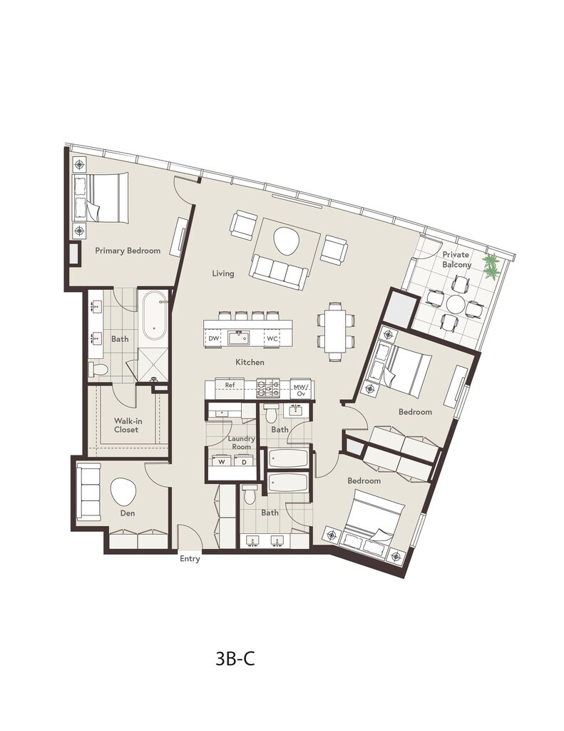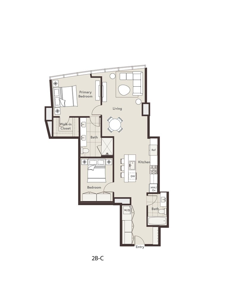 1B-C - Plano 1 Unidad de apartamento: 0211Modelo de apartamento: 1B-C$2,3241 Dormitorio, 1 Baño, 710 sq ftDisponible Ahora1B-G