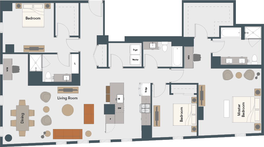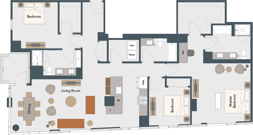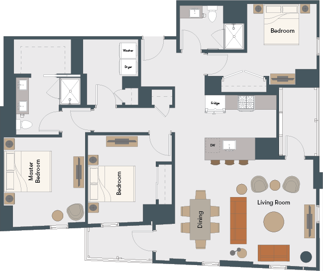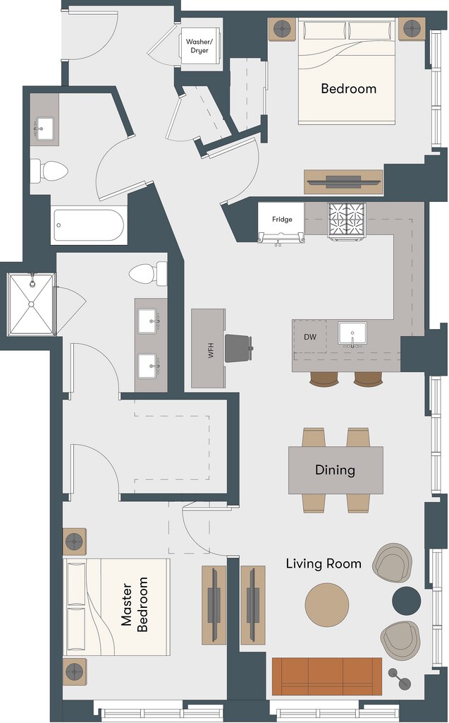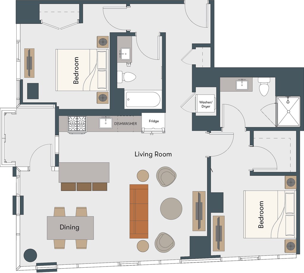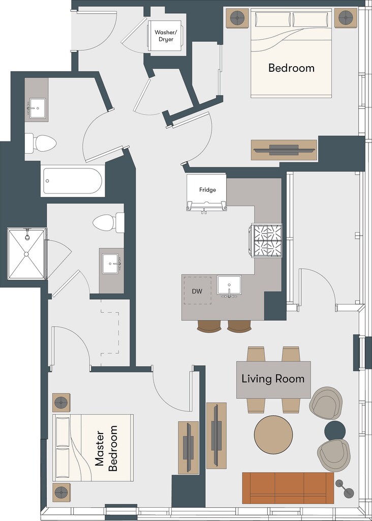 1 Dormitorio, 1 Baño, 851 pies²Disponible AhoraGalería del Modelo