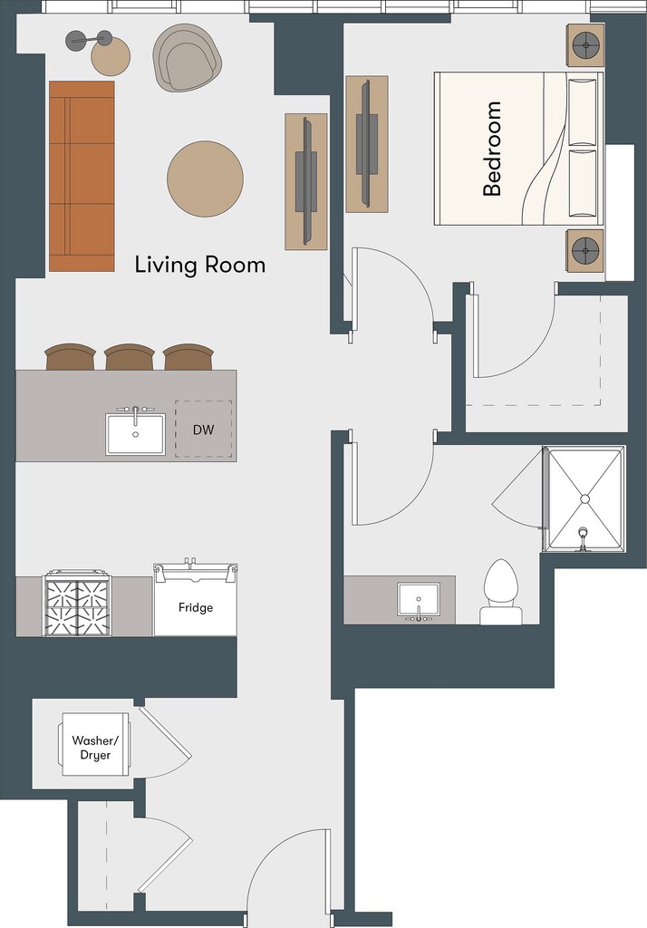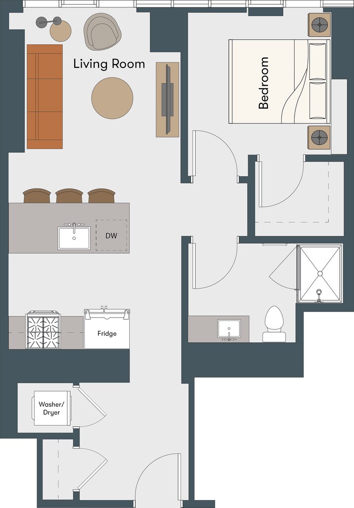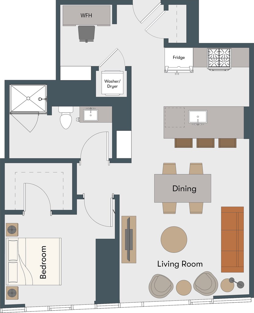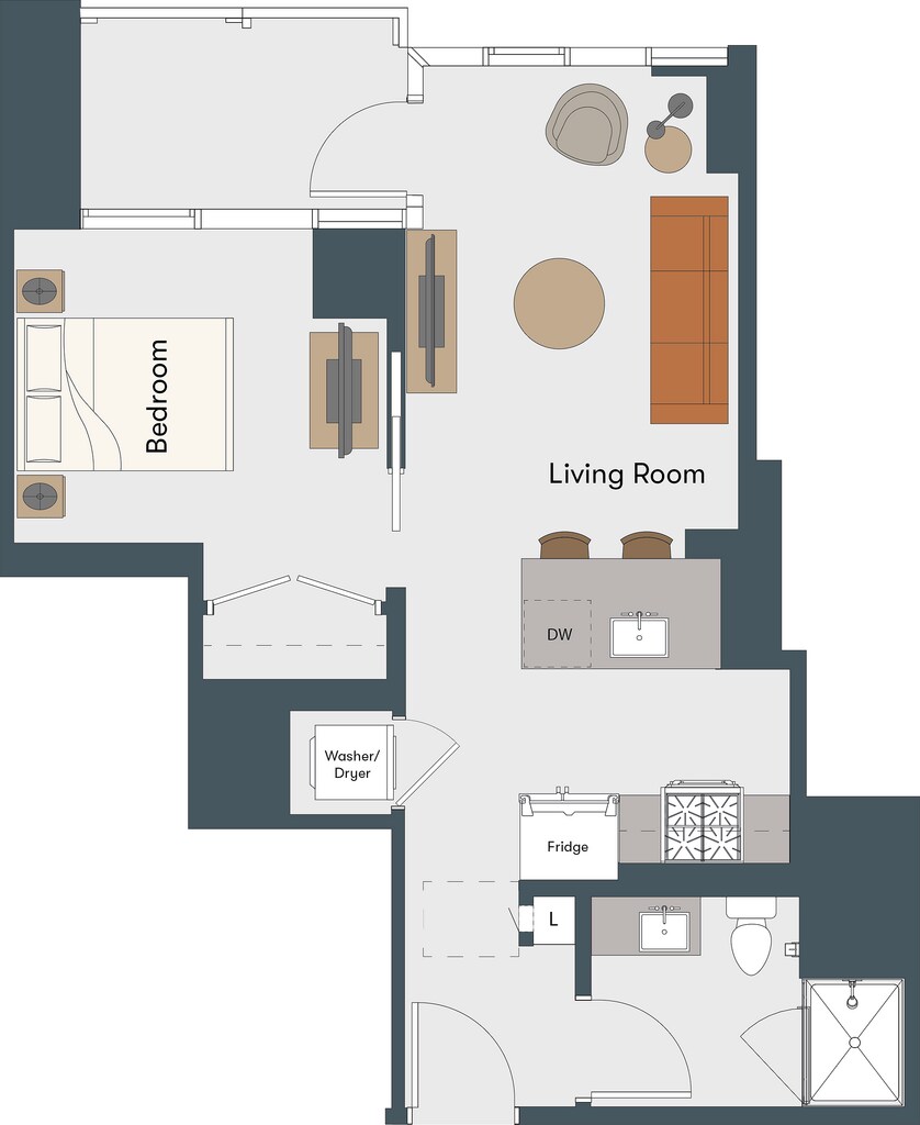 1 Dormitorio, 1 Baño, 707 pies²Disponible AhoraGalería del Modelo