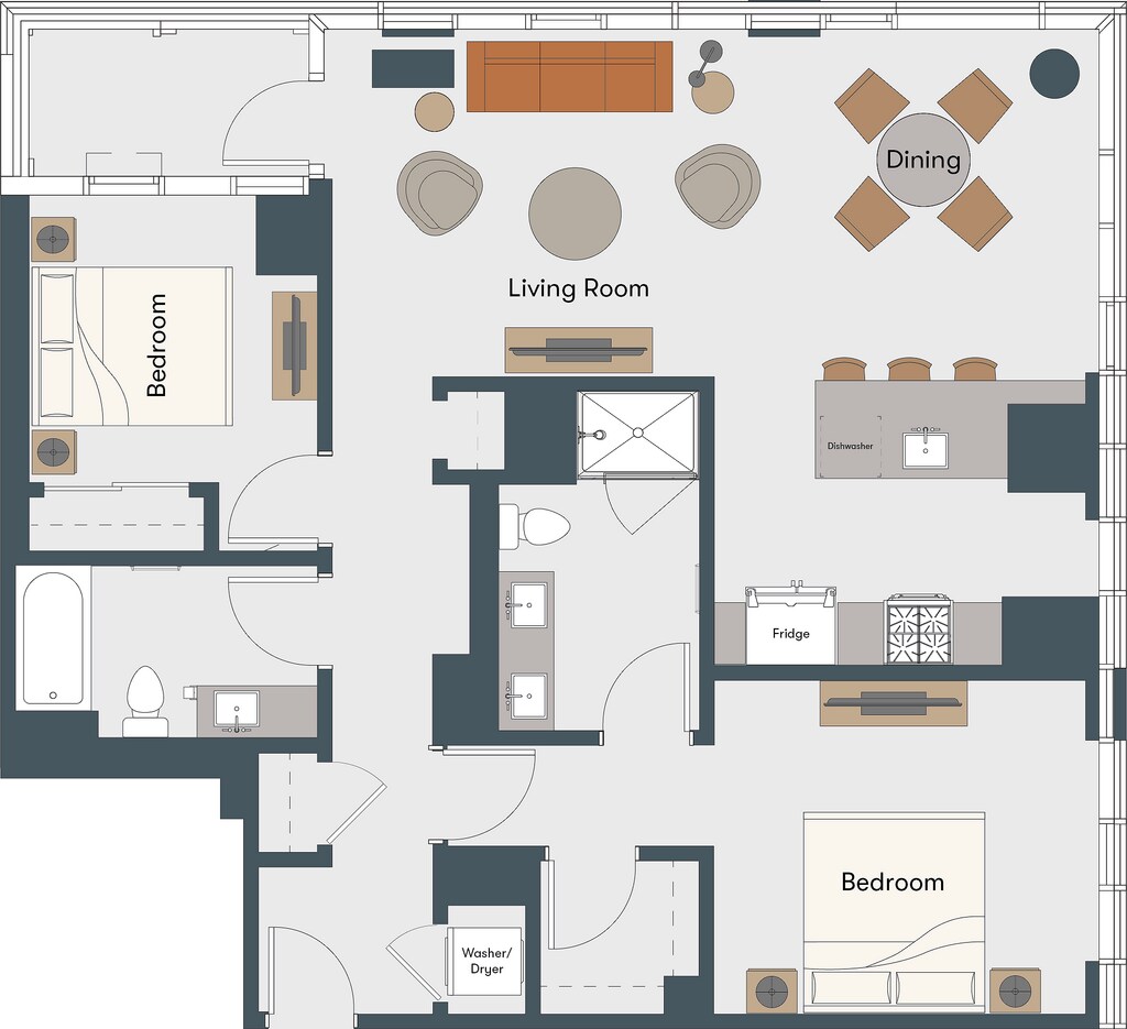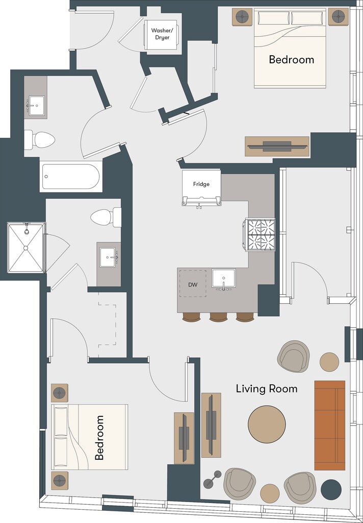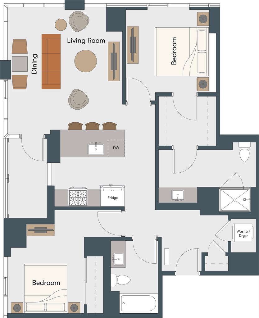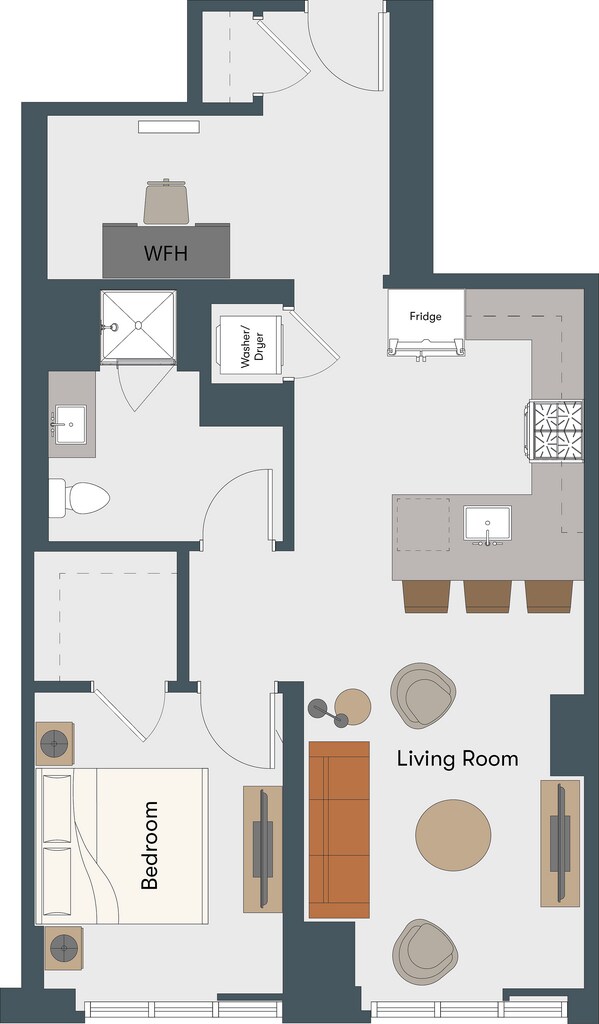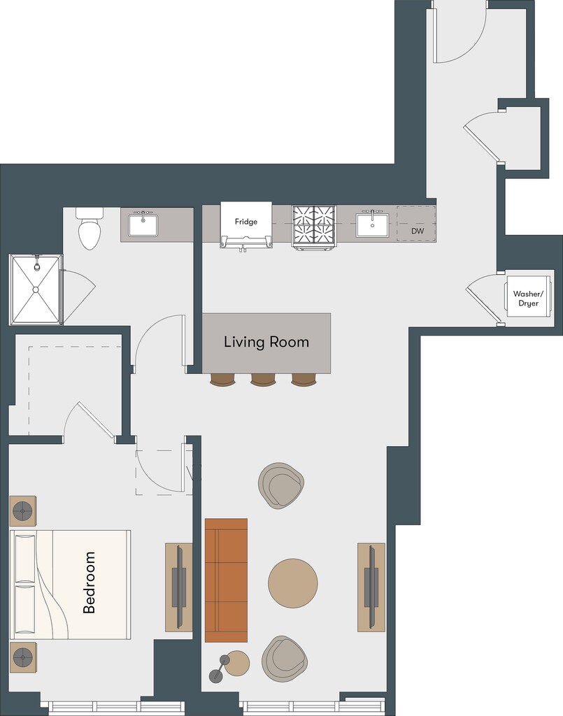 1 Dormitorio, 1 Baño, 707 pies²Disponible AhoraGalería del Modelo