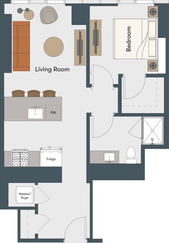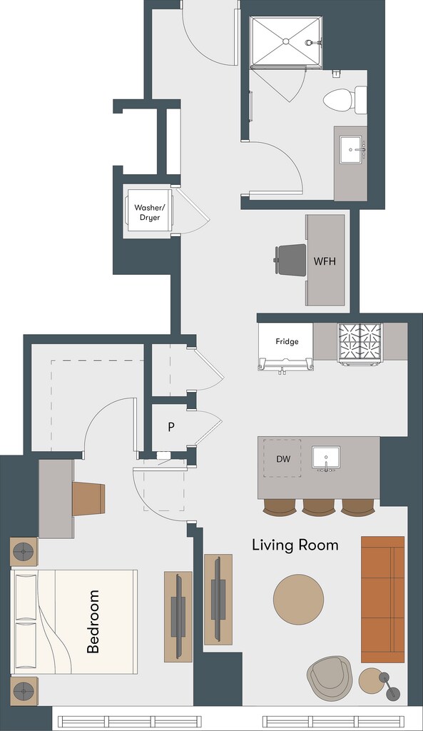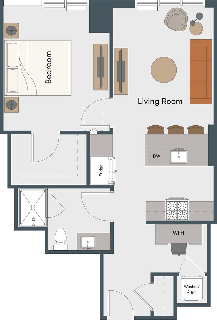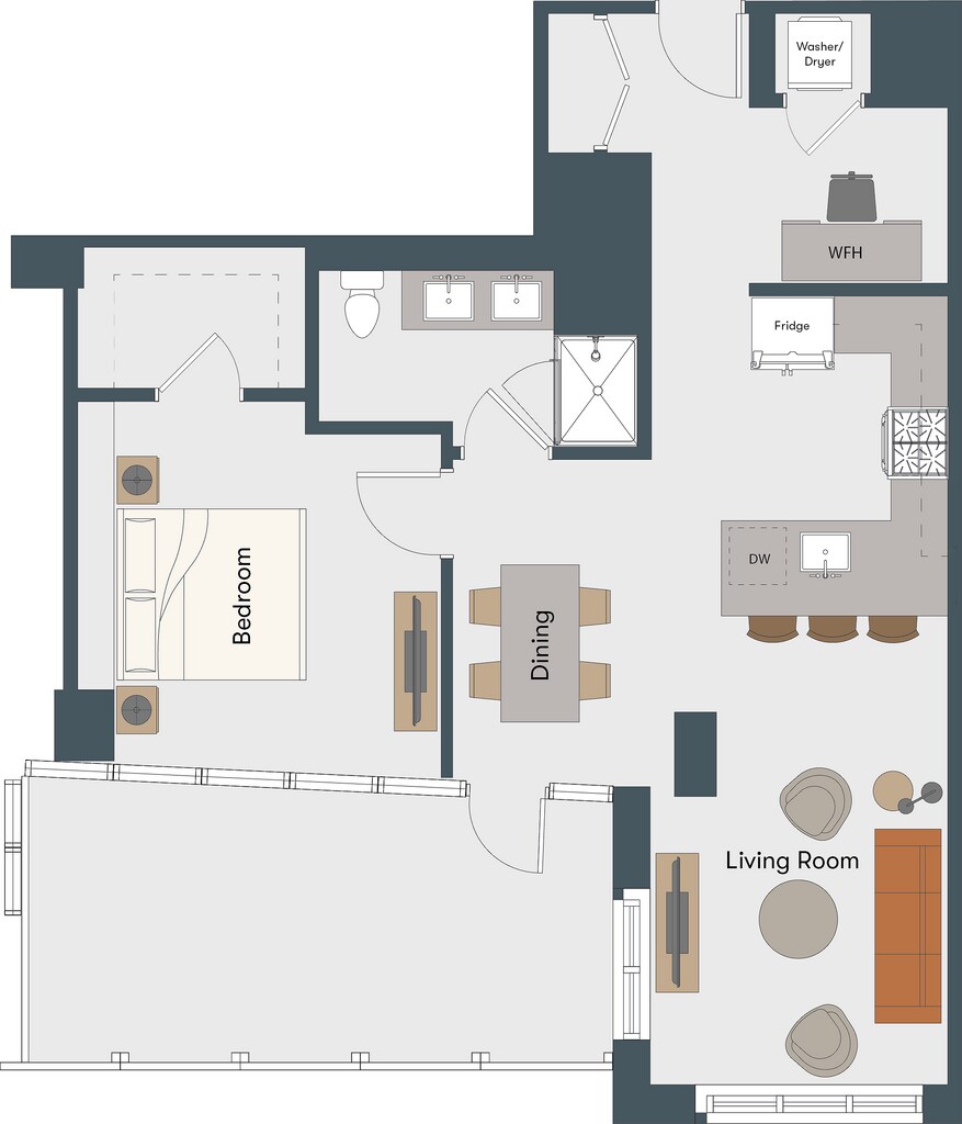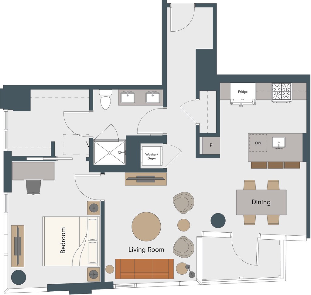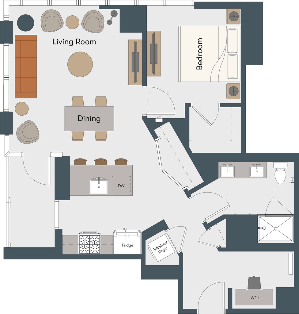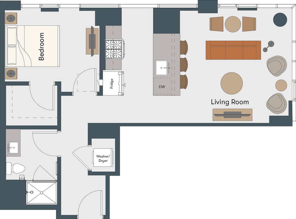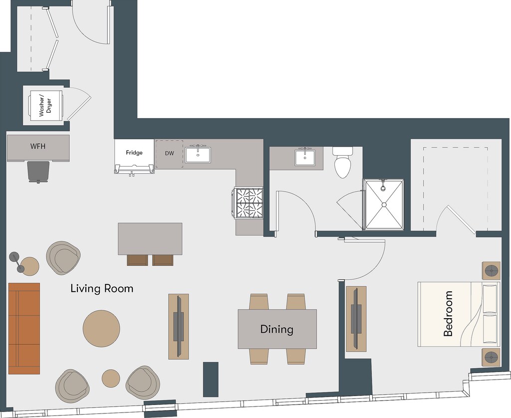 1 Dormitorio, 1 Baño, 785 pies²Disponible AhoraGalería del Modelo