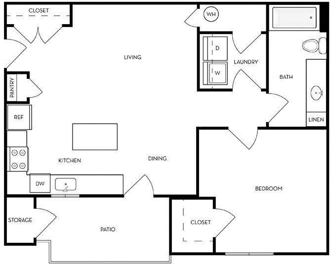 Wilson - Plano 1 Los planos de la planta son una interpretación artística. Todas las dimensiones son aproximadas. Los tamaños o el detalle del producto real y sus especificaciones pueden variar. No todas las características están disponibles en todos los hogares para rentar. Los precios y la disponibilidad están sujetos a cambios. El alquiler que se muestra es mensual. Se pueden aplicar ciertos cargos, por ejemplo, entrega de paquetes, recolección de basura, agua, servicios, etc. Depositos varian. Consulta a un representante para conocer detalles.