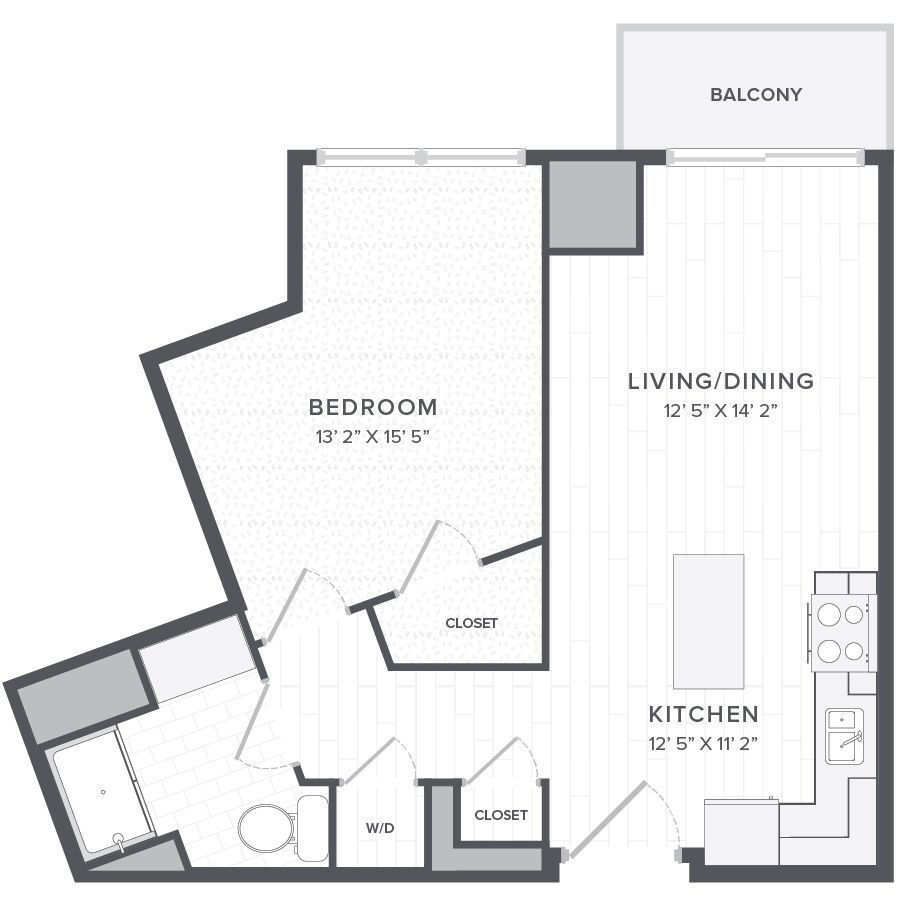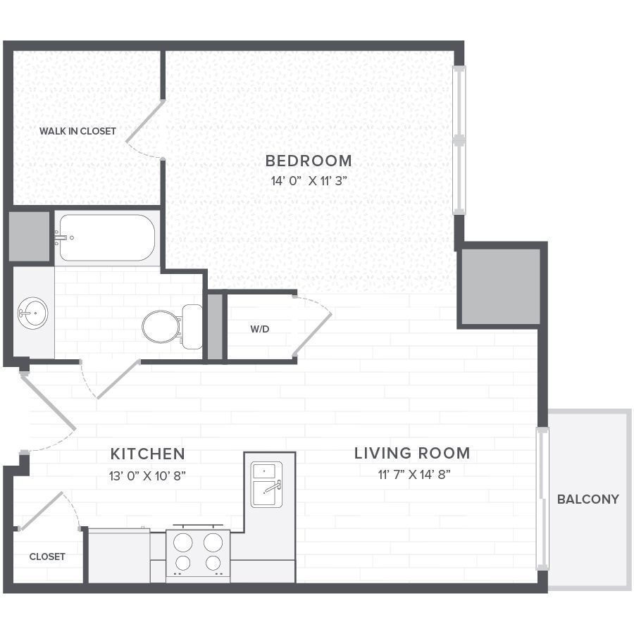 Modelo de apartamento: Studios-1D$1,887Estudio, 1 Baño, 601 sq ftNo DisponibleStudios-1D - Plano 1 Studios-1B