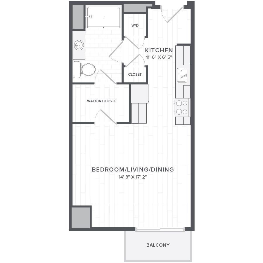 Estudio, 1 Baño, 660 pies²El más grandeEsta opción tiene las unidades más grandes para este modeloGalería del Modelo
