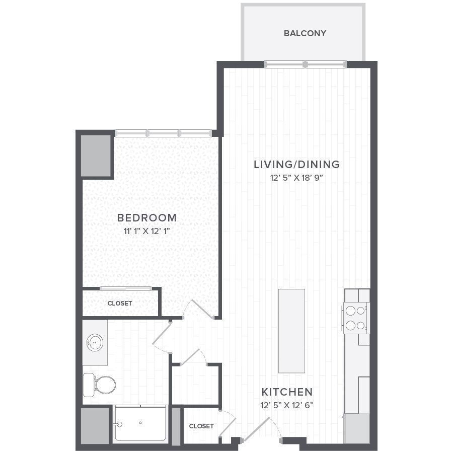 1 Dormitorio, 1 Baño, 740 pies²Disponible AhoraGalería del Modelo