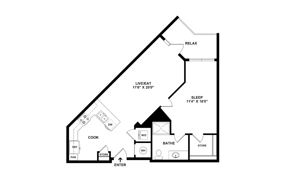 Estudio, 1 Baño, 545 pies²Disponible AhoraGalería del Modelo