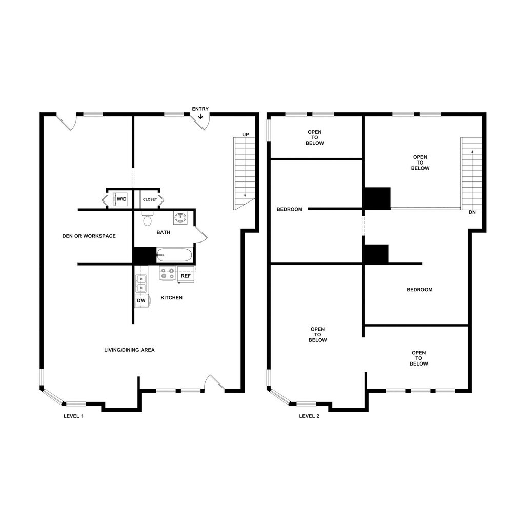 One Bedroom Live-Work Loft - Plano 4 2 Dormitorios