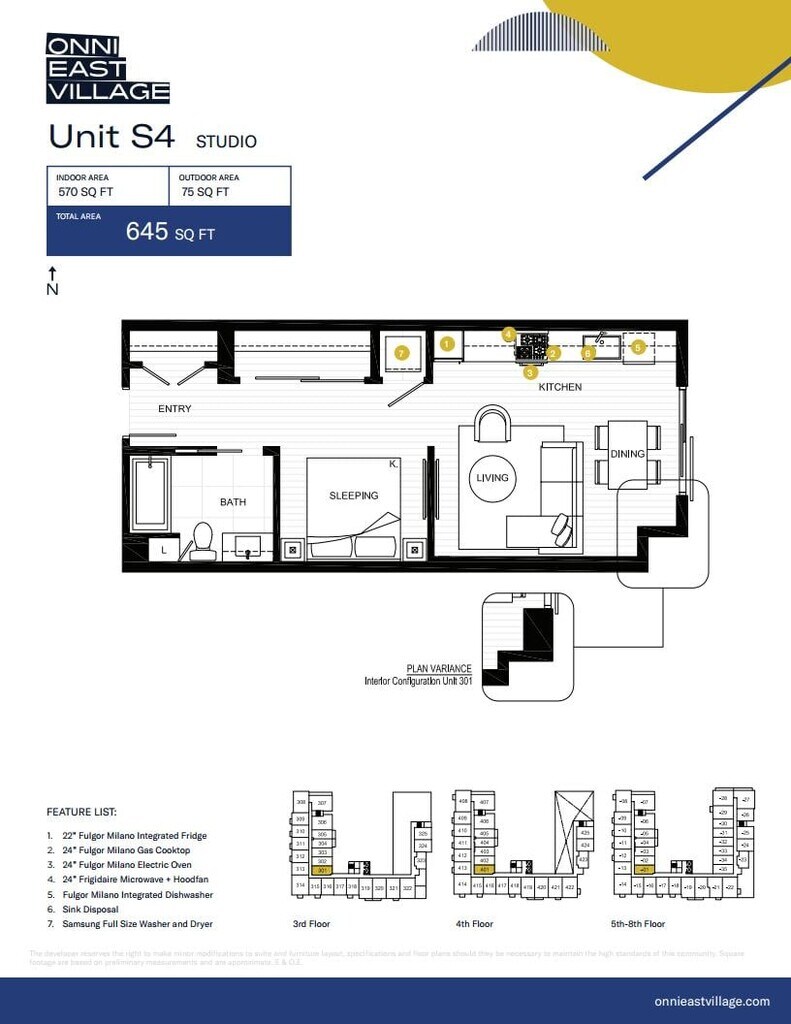 Estudio, 1 Baño, 570 pies²Disponible Nov 20Galería del Modelo