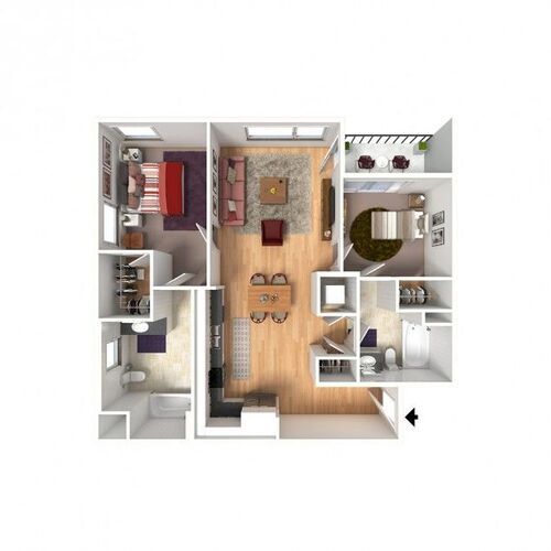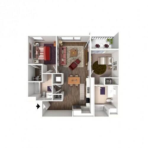 Modelo de apartamento: a5Desde $2,9731 Dormitorio, 1 Baño, 747 sq ftDisponible Ahora![]()