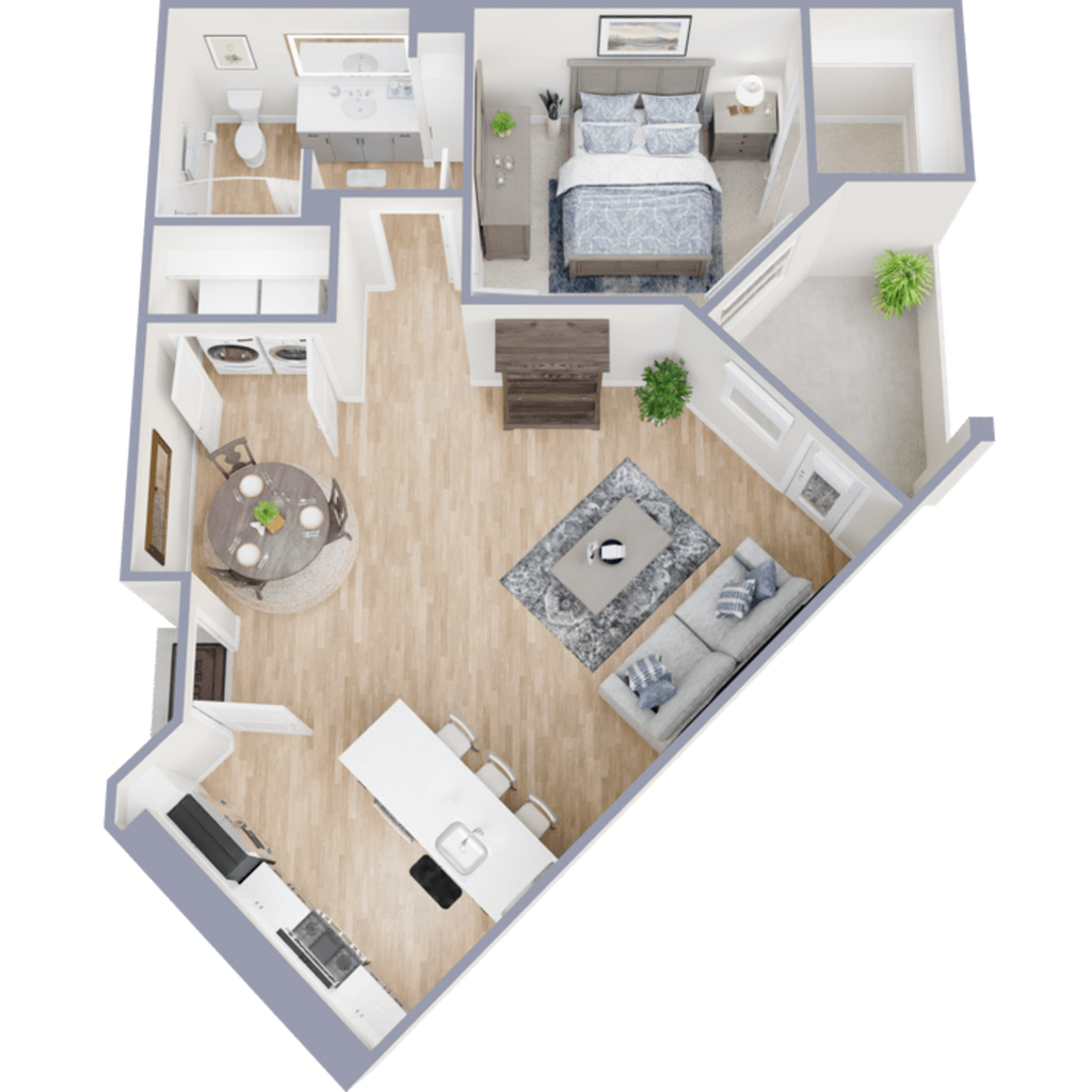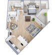 1 Dormitorio, 1 Baño, 742 pies²Disponible AhoraGalería del Modelo