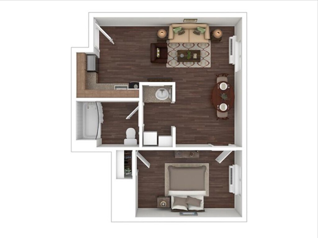Modelo de apartamento: CrystalLlame para Precios1 Dormitorio, 1 Baño, 597 sq ftNo Disponible![]()