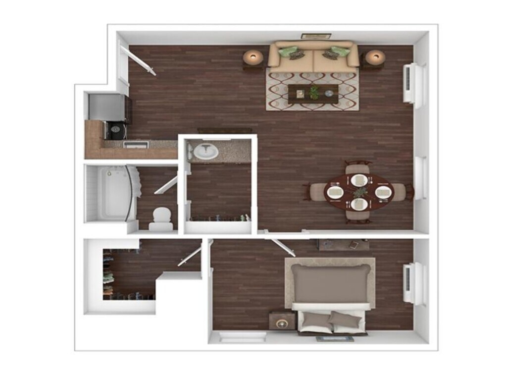1 Dormitorio, 1 Baño, 597 pies²El más grandeEsta opción tiene las unidades más grandes para este modeloGalería del Modelo